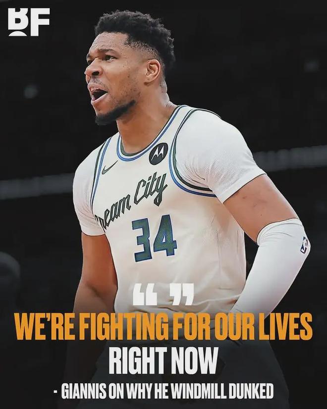 字母哥還表示:“我們只是東部第11,可能進不了季后賽!如果非得來個大風(fēng)車扣籃,才能喚醒所有人,那我愿意這樣干。”字母哥賽后在社交媒體曬出自己的扣籃照片,并寫道:我不是畫家,但你應(yīng)該明白這個畫面的含義!100分!