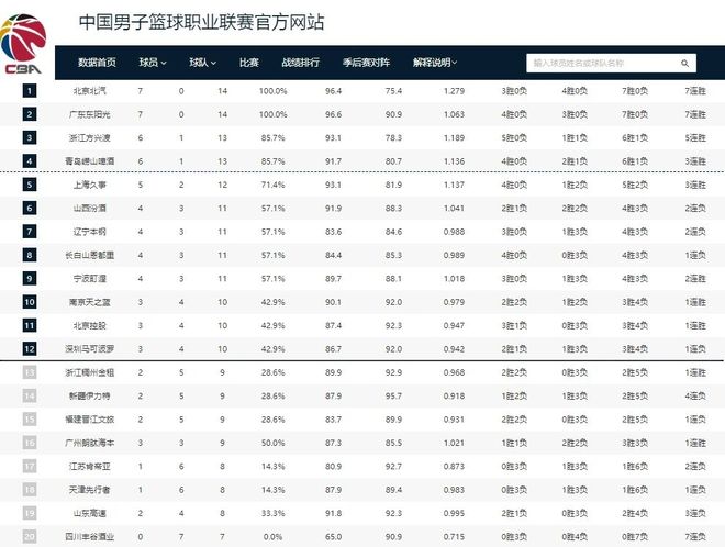 CBA新排名!北京廣東七連勝,遼寧連敗山東倒數(shù)第二 上海漸入佳境