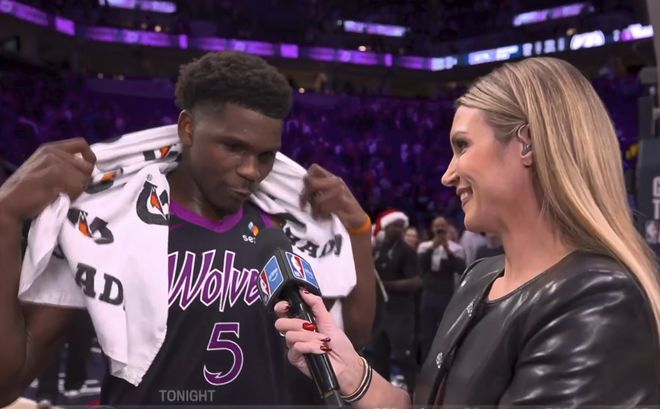 愛(ài)德華茲繼續(xù)開(kāi)啟得分模式,帶領(lǐng)森林狼90-85領(lǐng)先,杰倫威2罰全進(jìn),森林狼起勢(shì)了,但裁判的哨子又開(kāi)始響起,不利于森林狼,現(xiàn)場(chǎng)球迷發(fā)出噓聲。最后3分半鐘,雙方100平。亞歷山大跟愛(ài)德華茲對(duì)飆進(jìn)攻,華子命中高難度后撤步三分后,森林狼反超1分,還剩37.8秒!森林狼最后以112-107擊敗雷霆。愛(ài)德華茲全場(chǎng)砍下26分12籃板3助攻,亞歷山大空砍35分5板7助。