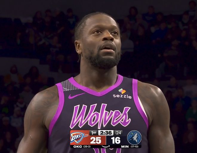 第二節(jié)比賽雙方的命中率都不高,投籃頻頻打鐵,只能在內(nèi)線造犯規(guī),裁判也是頻繁響哨。這一節(jié)比賽的觀賞性差點(diǎn)意思,肌肉硬漢們展示演技,罰球太多了,比賽支離破碎,打打停停。裁判在罰下森林狼主教練后有點(diǎn)找補(bǔ)的意思,森林狼球員上半場(chǎng)罰球次數(shù)為19次,但只命中10球,雷霆12罰11中。