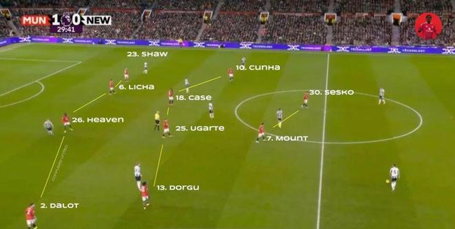 這是阿莫林執(zhí)教13個月以來首次采用首發(fā)的4231陣型,盧克·肖回到左邊衛(wèi)位置,而帕特里克·多古則重演在意甲萊切時(shí)打右邊鋒的一幕,與迪奧古·達(dá)洛一起充實(shí)右側(cè)防守。庫尼亞和梅森·芒特替代受傷的布魯諾·費(fèi)爾南德斯,負(fù)責(zé)組織進(jìn)攻。